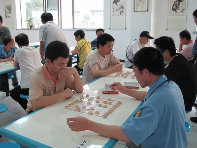 這次比賽共有管理部、總裝課、涂焊一、二課、鑄機(jī)一課、品證部、購(gòu)買本部7支代表隊(duì)參加,每個(gè)隊(duì)出場(chǎng)3名隊(duì)員,一一對(duì)陣,比賽采用單循環(huán)制。參賽隊(duì)員都是久經(jīng)戰(zhàn)陣、深諳比賽個(gè)中奧妙和制勝技巧的頂尖高手,特別是管理部的喻洪義、鑄機(jī)一課的萬杰實(shí)戰(zhàn)經(jīng)驗(yàn)十分豐富,戰(zhàn)術(shù)相當(dāng)老道高超,業(yè)余時(shí)間還不忘研究《梅花譜》、《橘中秘》等經(jīng)典象棋棋譜,從前人的經(jīng)驗(yàn)中吸取智慧和營(yíng)養(yǎng),把諸如當(dāng)頭炮、臥槽馬、雙車錯(cuò)、馬后炮、天地炮等戰(zhàn)術(shù)爛記于心,運(yùn)用游刃有余、得心應(yīng)手,簡(jiǎn)直達(dá)到了爐火純青、滴水不漏的境界。你看,萬杰對(duì)管理部高手楊忠義的比賽十分激烈,這個(gè)布下橫車列馬,那個(gè)應(yīng)以中炮底炮,針尖對(duì)麥芒,互不相讓,好似身經(jīng)百戰(zhàn)、戰(zhàn)無不勝的統(tǒng)帥在斗智斗勇、論兵布道,最后誰也勝不了誰,雙方只好握手言和。